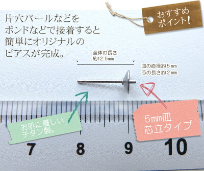 【1ペア(2個)】5mm皿 芯立 チタン ピアス金具【パールジャム】ビーズ 片穴丸玉用 部品 パーツ販売 手作り 手芸 作家 アクセサリー ハンドメイド クラフト かわいい 人気 材料