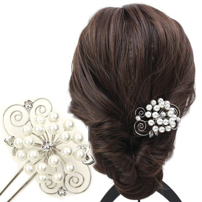 髪飾り 黒留袖 結婚式 成人式 振袖 和装 パール 花簪 かんざし 大 袴 卒業式 着物 入学式 ヘアアクセサリー ウェディング 前撮り パーティー 花しおり シルバー 大原商店